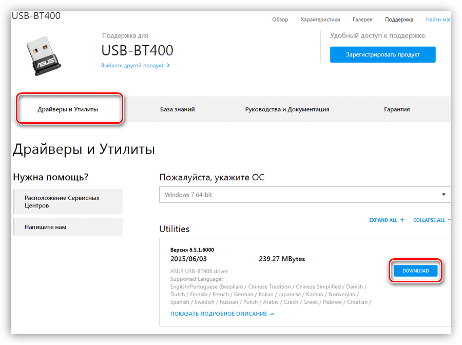 Ручной режим – поиск драйвера на официальном сайте производителя. Ниже пример с устройством от Asus.