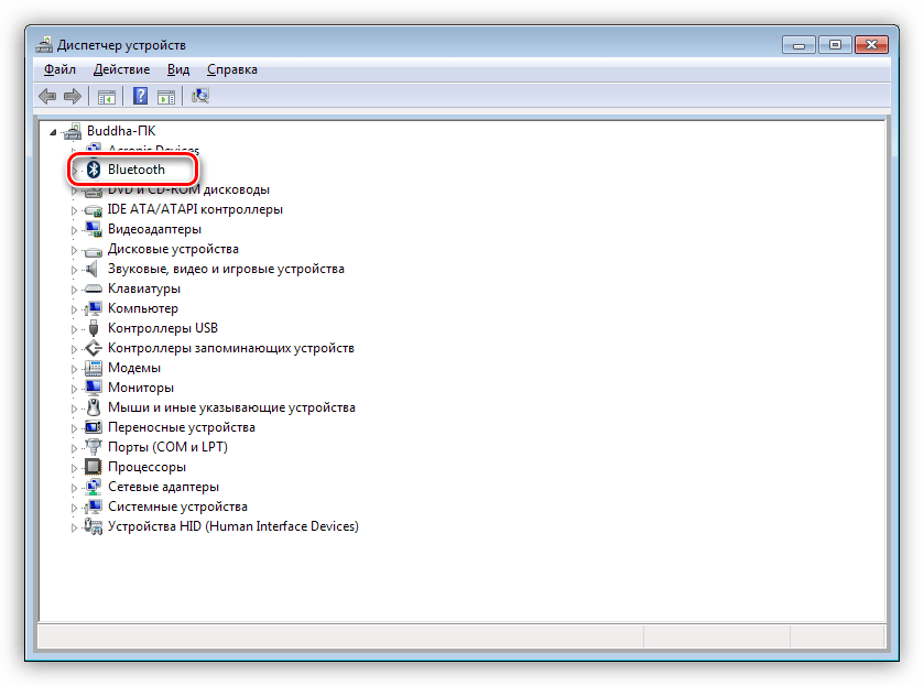 Данный вариант подразумевает наличие встроенного адаптера, что наблюдается на некоторых материнских платах или ноутбуках. Для проверки достаточно перейти в «Диспетчер устройств» в «Панели управления» и найти ветку «Bluetooth». Если ее нет, то нет и адаптера.