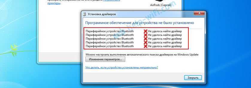 Включением служб и настройкой звука проблема решается не всегда. Очень часто компьютер вообще не видит наушники, появляется ошибка при подключении, или просто Windows 7 не может установить драйверы на подключаемое устройство и соответственно наушники не работают. Система не видит их как источник для вывода звука. По этой проблеме писал отдельную статью: Bluetooth наушники не воспроизводят звук с ноутбука. Не отображаются в устройствах воспроизведения Windows.