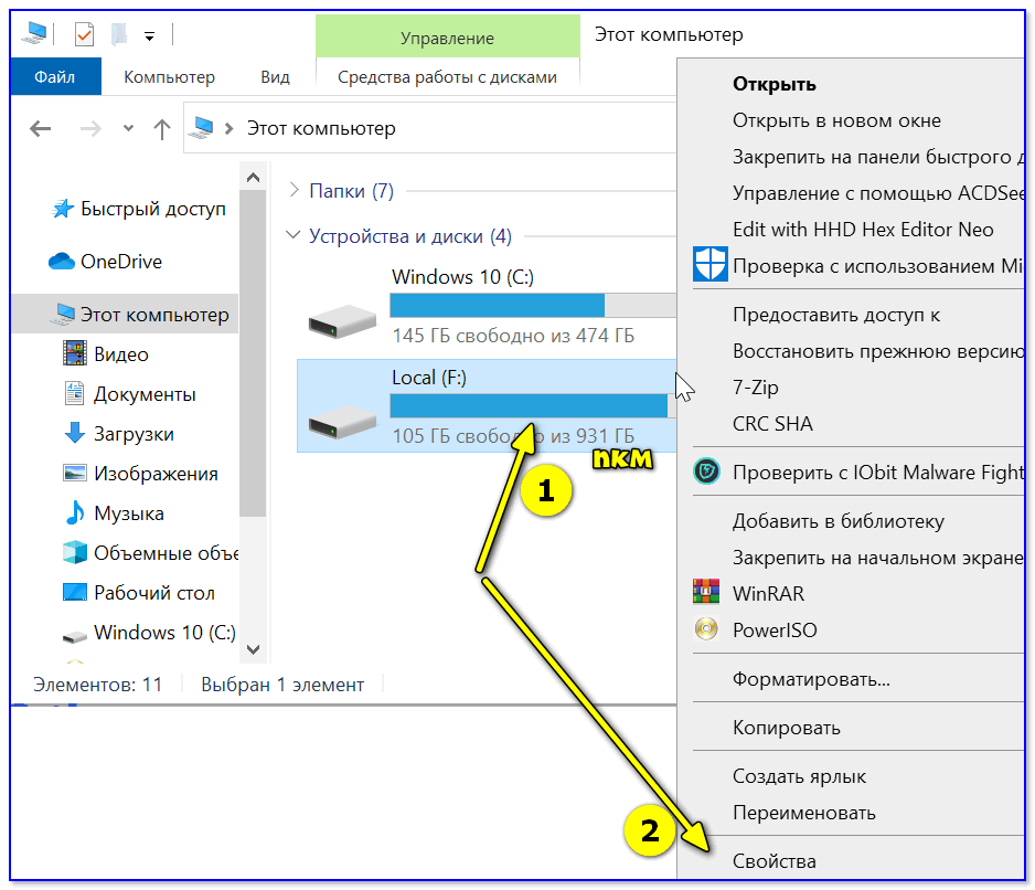 Делается это просто: в «моем компьютере» необходимо открыть свойства нужного диска.