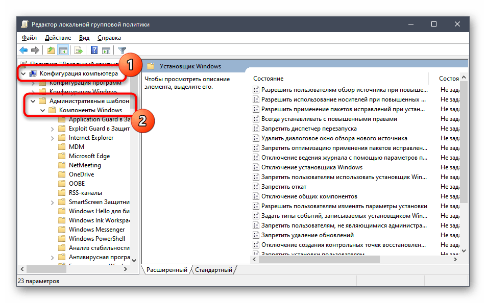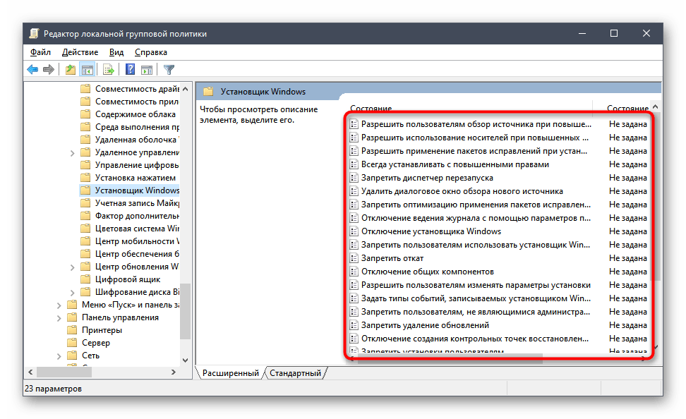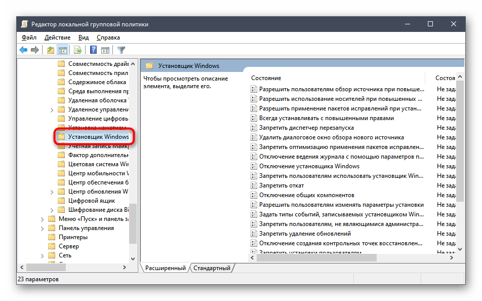 В приложении «Локальная политика безопасности» есть несколько параметров, влияющих на установку программного обеспечения. Если их настройки сбились, изменились сторонними средствами или администратором, возможно появление рассматриваемой в этой статье проблемы. Для проверки параметров выполните следующие действия: