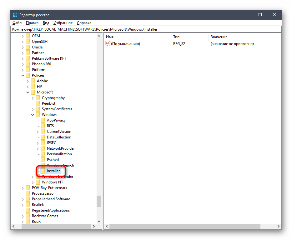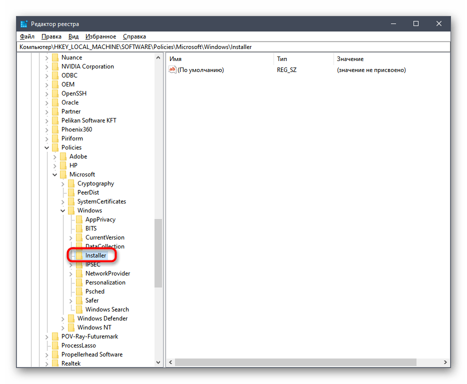 Рассматриваемая проблема бывает напрямую связана с наличием папки «Installer» в системном реестре. В ее устранении может помочь как редактирование параметров этого каталога, так и удаление его целиком.