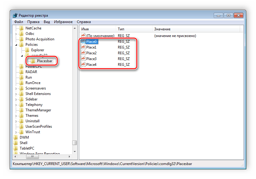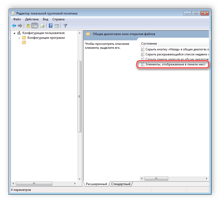 - Здесь вас интересует «Элементы, отображаемые в панели мест».