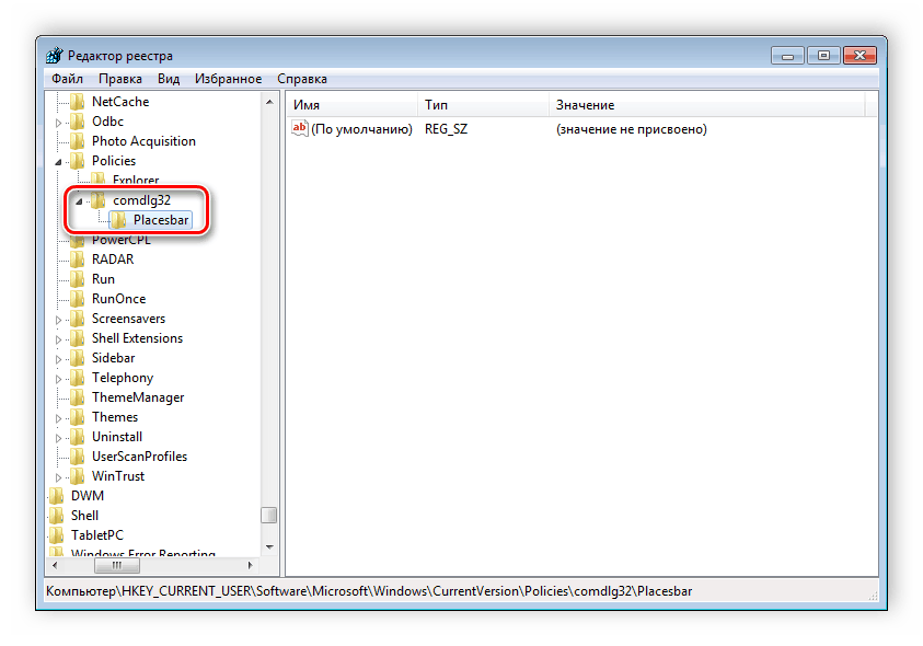 - Выберите папку «Policies» и сделайте в ней раздел comdlg32.
