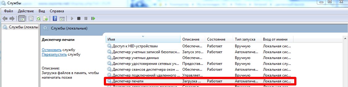 Сервер RCP недоступен в Windows 7 при печати — решение проблемы довольно простое. В окне «Службы» найдите Диспетчер печати и запустите его.