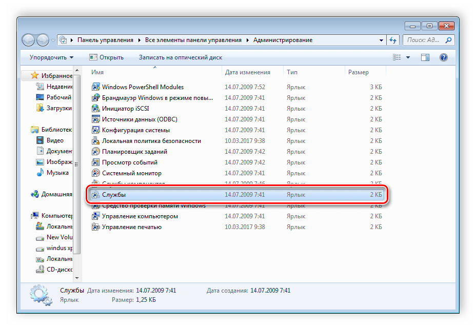 Для этого, так же как и в предыдущей методике, следует перейти к службам операционной системы.