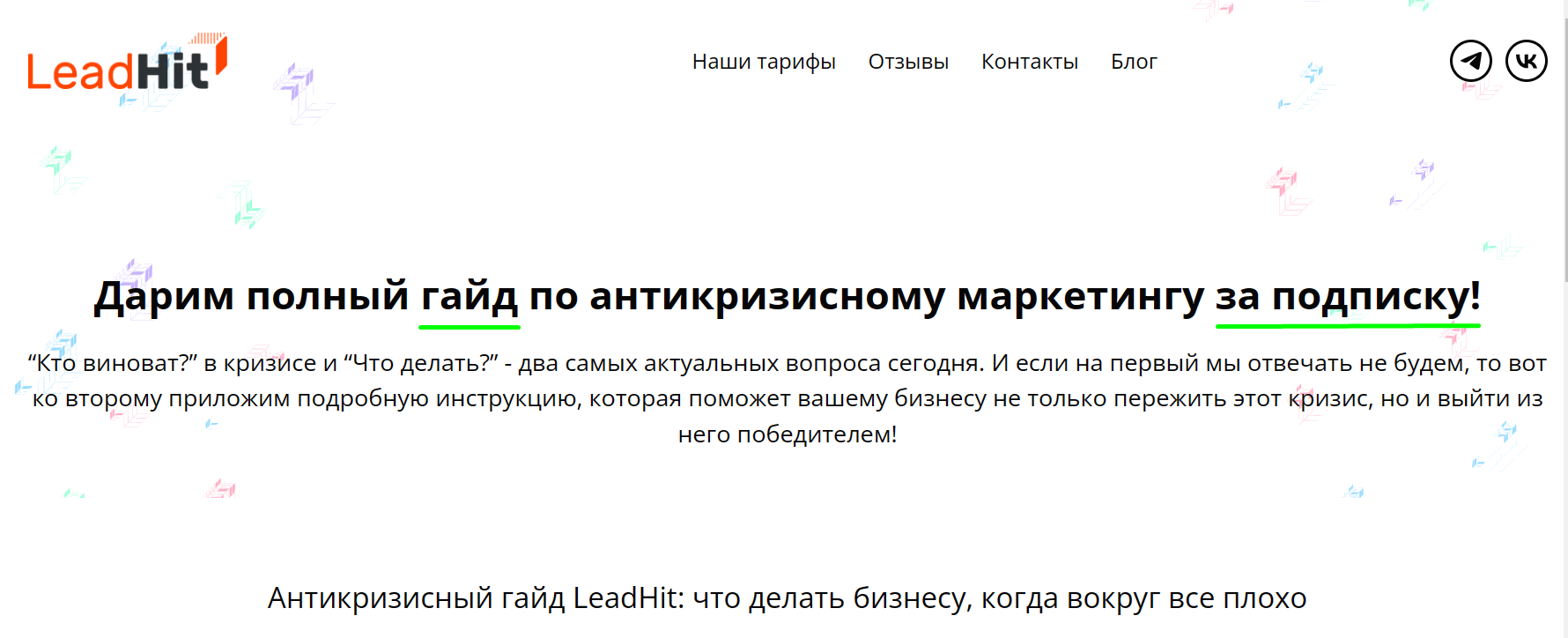 Компания LeadHit предлагает полезную информацию для предпринимателей. Чтобы получить гайд, надо оставить адрес электронной почты