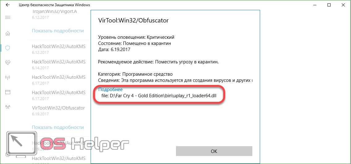 Если вы уже установили игру, а антивирус при этом был отключен, то добавьте папку с нею в исключения. Если же uplay_r1_loader64.dll был удален, можно переустановить Far Cry 4 или просто добавить файл. Подробнее о том, как можно деактивировать защитник Windows 10 читайте тут.