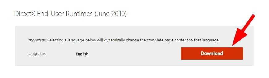 1) Перейти к Microsoft Страница загрузки DirectX для конечных пользователей.