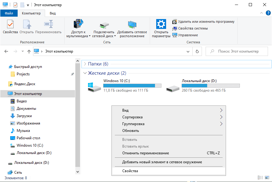 - Запустить «Проводник» комбинацией клавиш Win + E или просто открыв «Этот компьютер».