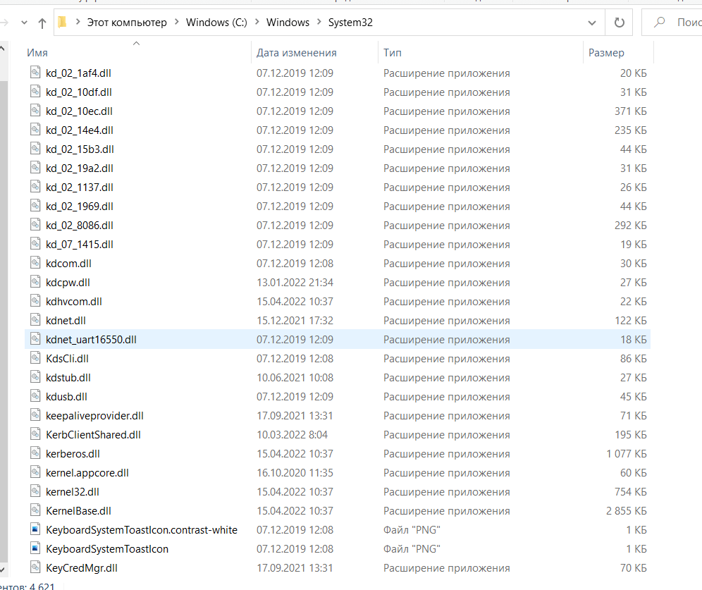 - Проверьте, действительно ли в системной папке System32 (по адресу C:\Windows\System32) есть необходимый файл KERNEL32.DLL, а не KERNEL32..exe.