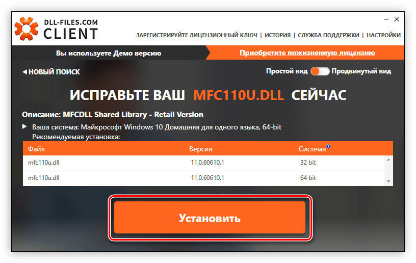 Приложение самостоятельно установит в нужную папку mfc110u.dll, после чего все ПО, которое при запуске выдавало ошибку, будет без проблем открываться.
