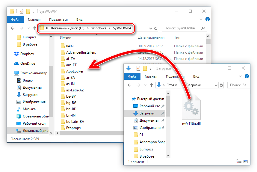 Если вы не хотите загружать дополнительное ПО для устранения ошибки mfc110u.dll, то можно скачать библиотеку самостоятельно и затем инсталлировать ее на ПК.