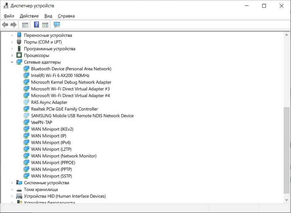 - Найдите и откройте ветку «Сетевые адаптеры».