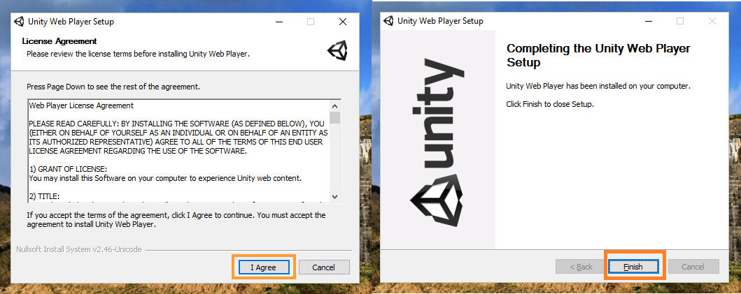 Если веб-плеер установлен корректно, и ваше устройство достаточно производительно для контента Unity, то вам нужно попробовать запустить в своём браузере демо-примеры, и также стоит проверить другие игры. Если у вас не работают демо-примеры, пожалуйста, отправьте нам письмо на support@unity3d m, рассказав во всех подробностях, что происходит на каждом описанном выше шаге. Установщик WebPlayer для PC