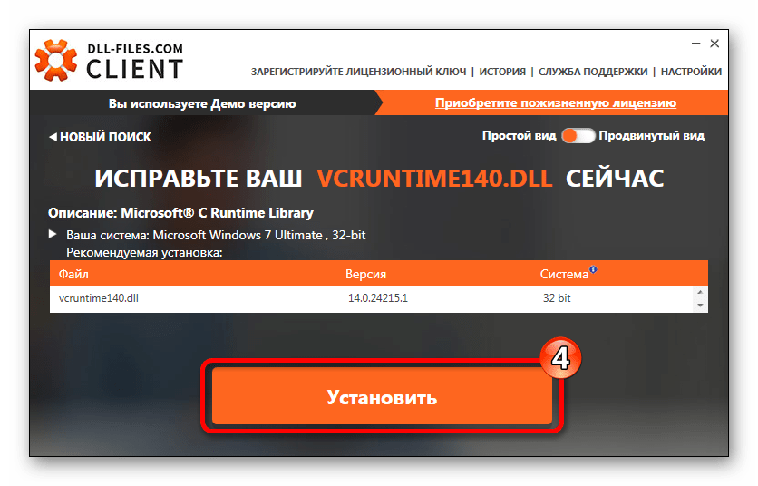 Указываете нужную разрядность утилиты и скачиваете пакет устанавливающий вам библиотеку vcruntime140.dll в систему.
