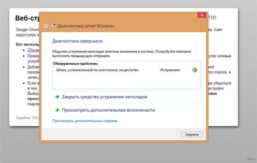 Вы наскоро лезете в Диагностику сети (правой кнопкой по этому значку с восклицательным знаком). А уже диагностика сообщает вам о том, что «Шлюз, установленный по умолчанию, недоступен». При этом система сама может попытаться и удачно исправить ошибку: