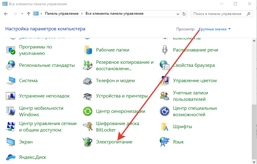 Настройка электропитания