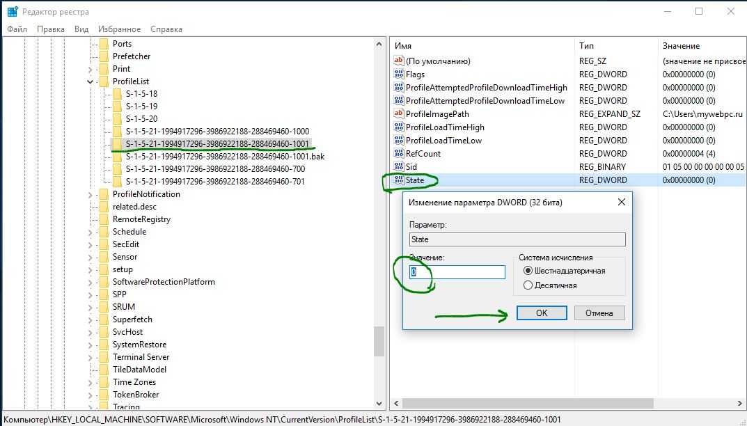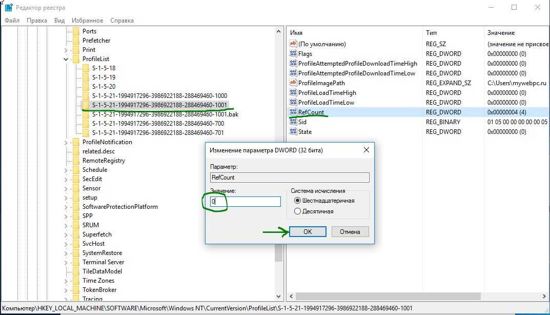 - Следуйте HKEY_LOCAL_MACHINESOFTWAREMicrosoftWindows NTCurrentVersionProfileList;