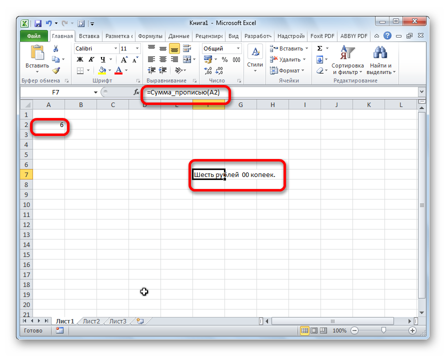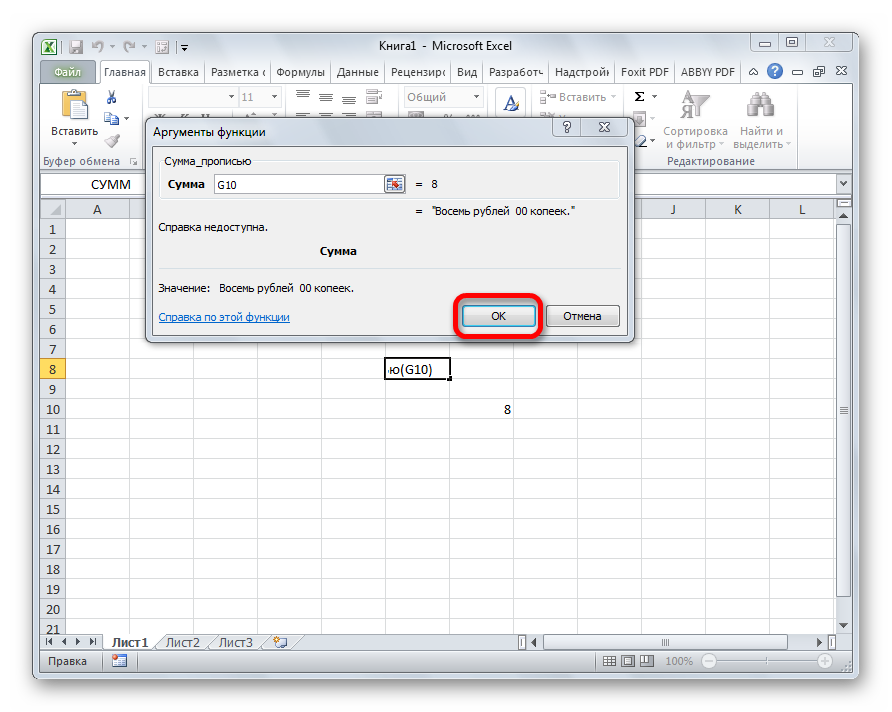 Подключение надстройки «Сумма прописью» завершено, теперь можно ею воспользоваться.