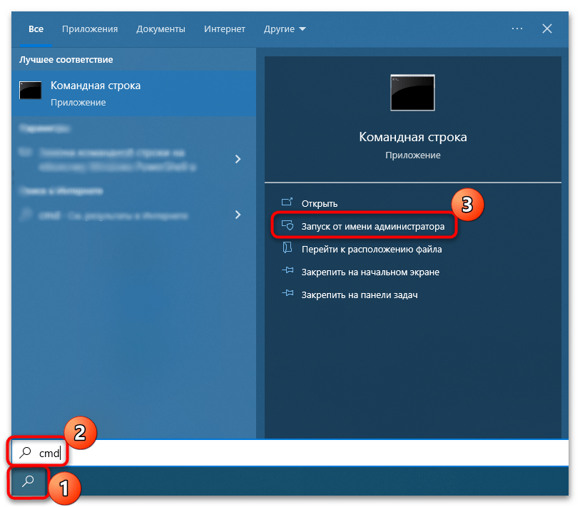- Откройте «Командную строку» от имени администратора. Для этого воспользуйтесь строкой системного поиска и запросом .
