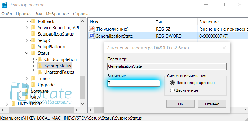 HKEY_LOCAL_MACHINE\SYSTEM\Setup\Status\SysprepStatus