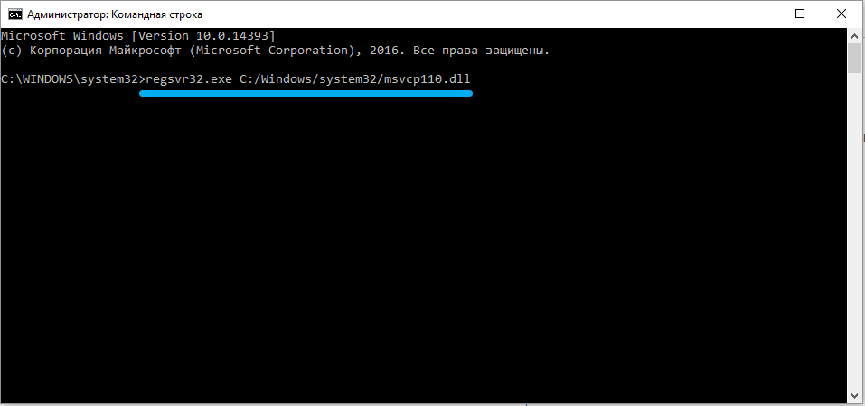 - Откроется черное окно. В него следует внести regsvr32.exe и указать путь к скачанным библиотекам на вашем компьютере. Жмем Enter.