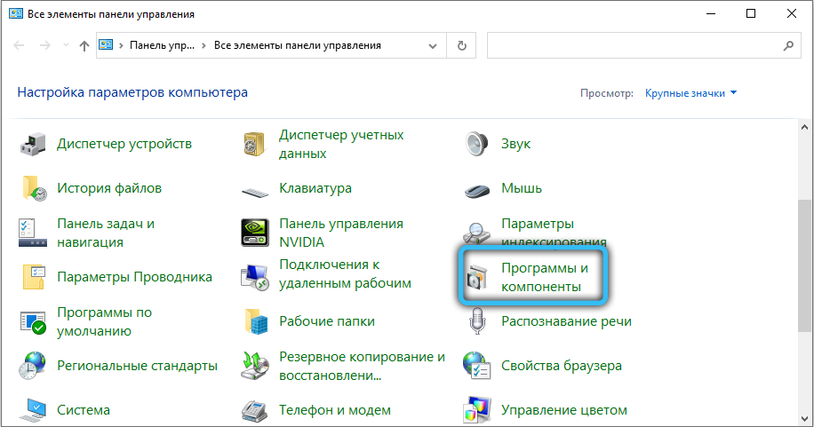 - Полностью удаляем программу через «Программы и компоненты» (пункт находится в Панели управления).