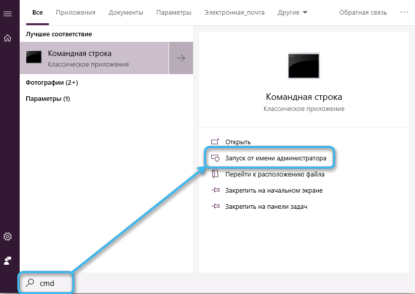 Когда увидите опцию «Командная строка» среди результатов поиска, нажмите клавиши «CTRL» + «SHIFT» + «ENTER» на клавиатуре.