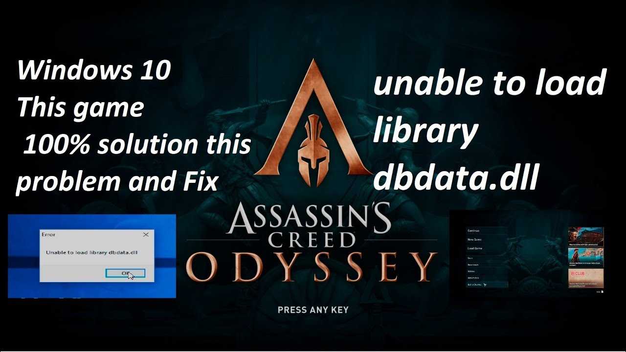 Если во время запуска популярной игры от Ubisoft возникает ошибка «unable to load library dbdata.dll» скачать для Windows 10 Assassins Creed Odyssey можно будет на данной странице совершенно бесплатно, без регистрации и отправки СМС. Также рассмотрим несколько способом, как исправить проблему другими способами.