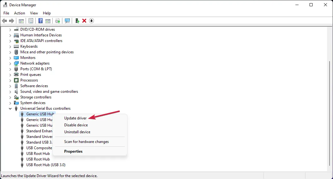 К сожалению, вам придется выполнить эту процедуру для всех драйверов USB, которые вы можете найти в разделе Контроллеры универсальной последовательной шины.