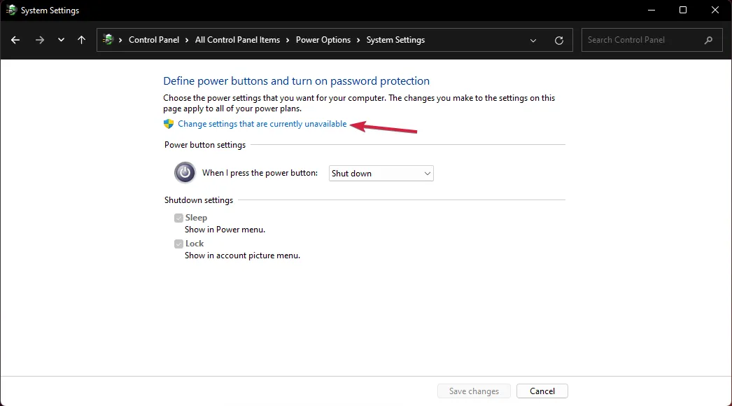 - Нажмите «Изменение параметров, которые сейчас недоступны».