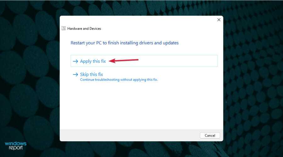 Система обнаружит любые возможные проблемы с вашим оборудованием, и если это так, нажмите Применить это исправление .