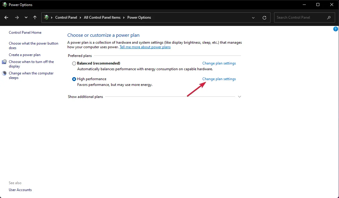 Щелкните Изменить параметры плана для вашего плана электропитания.