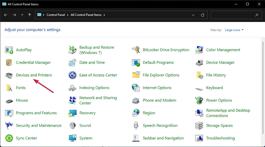 Теперь выберите « Устройства и принтеры» .