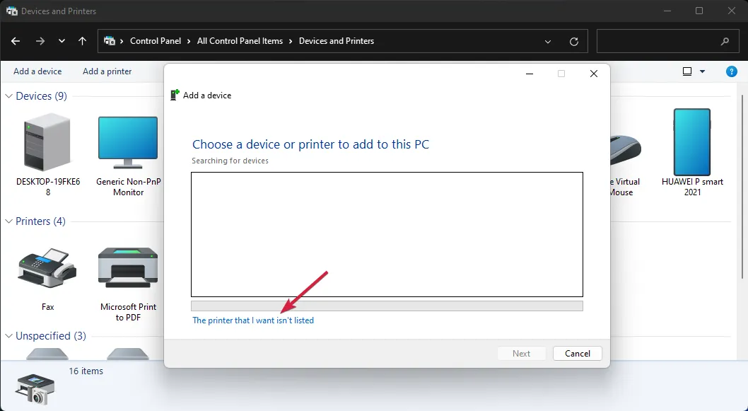 Теперь выберите Требуемый принтер отсутствует в списке .