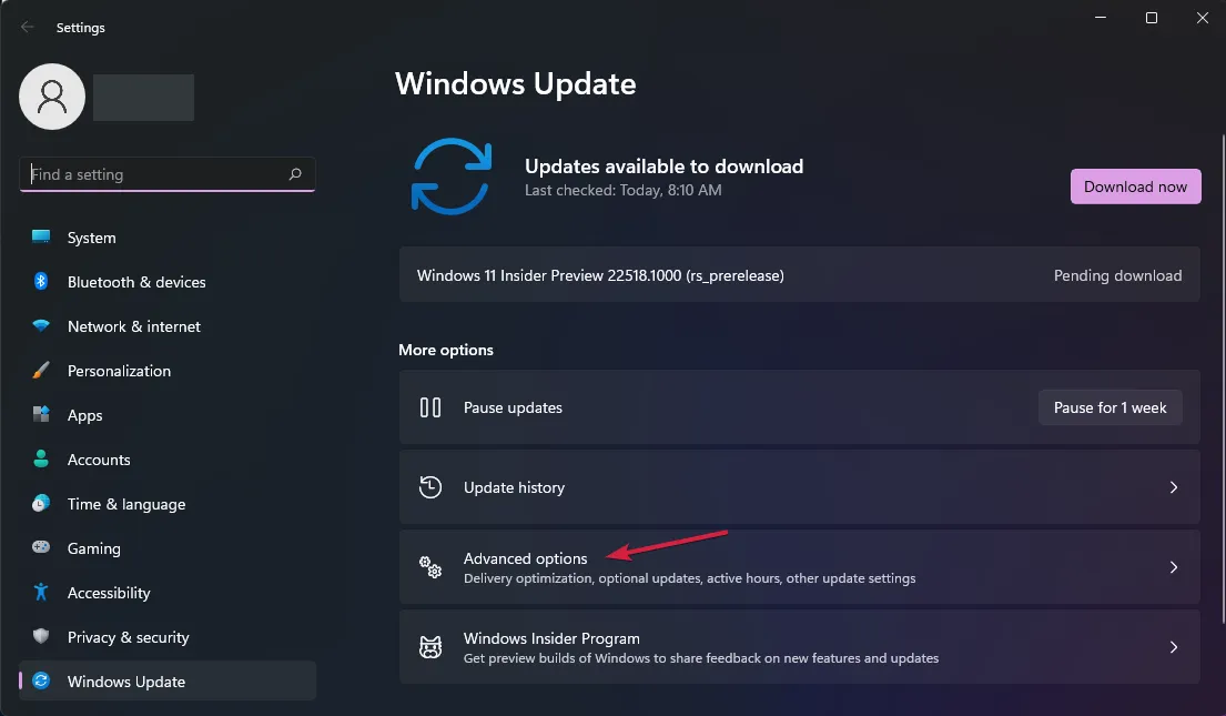 Вы попадете в меню Центра обновления Windows . Щелкните Дополнительные параметры .