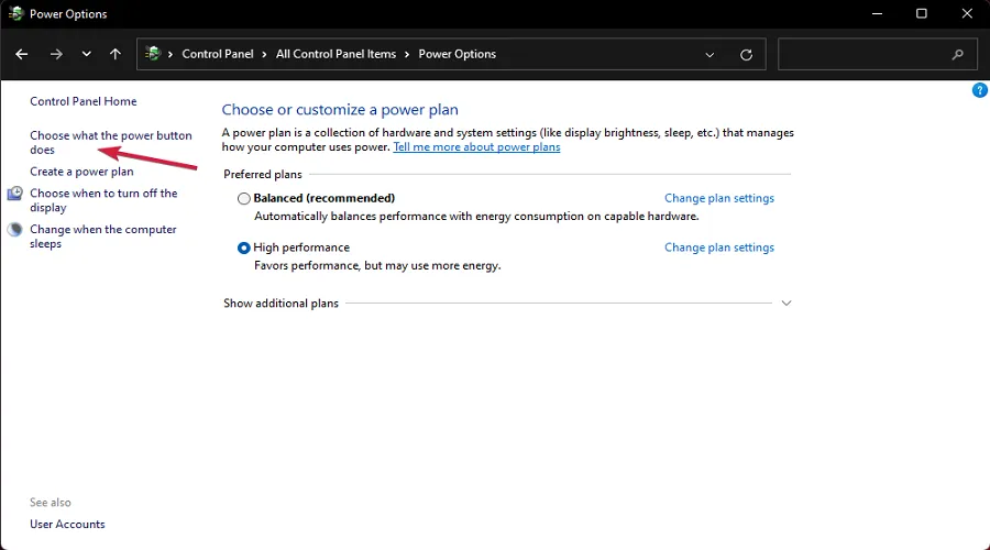 Щелкните Параметры питания .