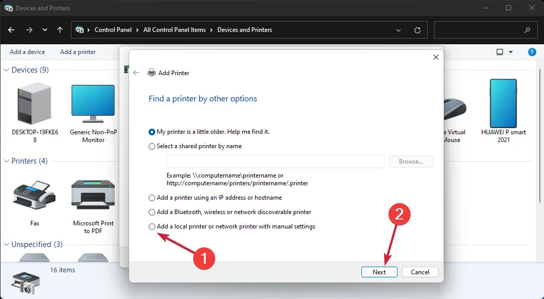 6. Добавьте принтер вручную.
