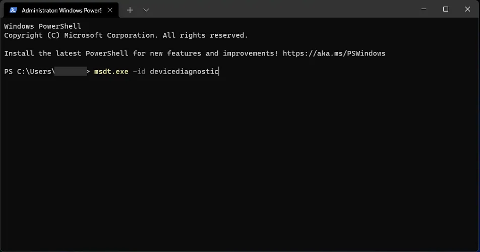 Введите или вставьте следующую команду и нажмите, Enterчтобы запустить ее:msdt.exe -id devicediagnostic