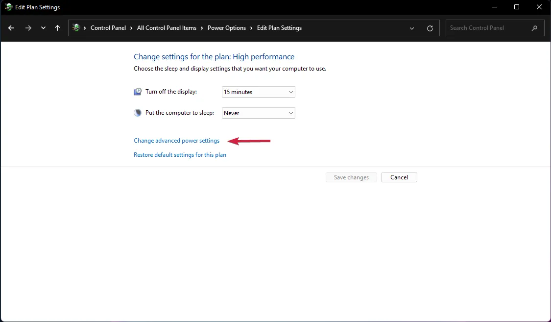 Теперь выберите Изменить дополнительные параметры питания .