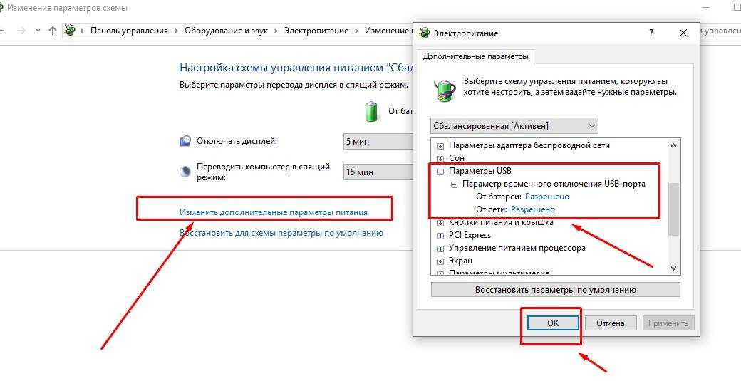 2. Измените настройки питания USB.