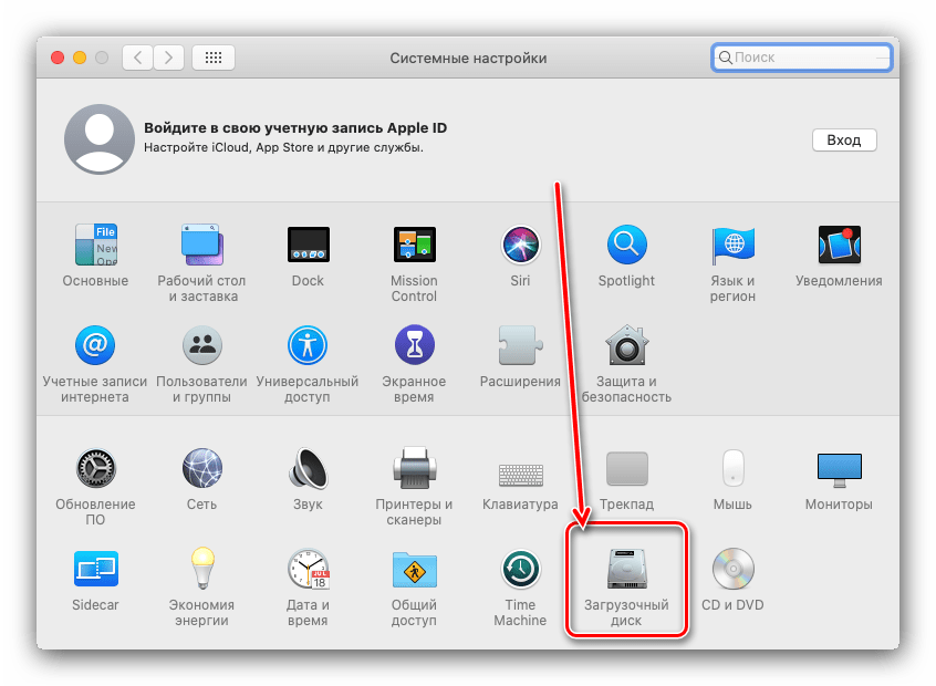 Далее выберите пункт «Загрузочный диск». В новейшей на момент написания статьи macOS Catalina он расположен в нижней части окна.