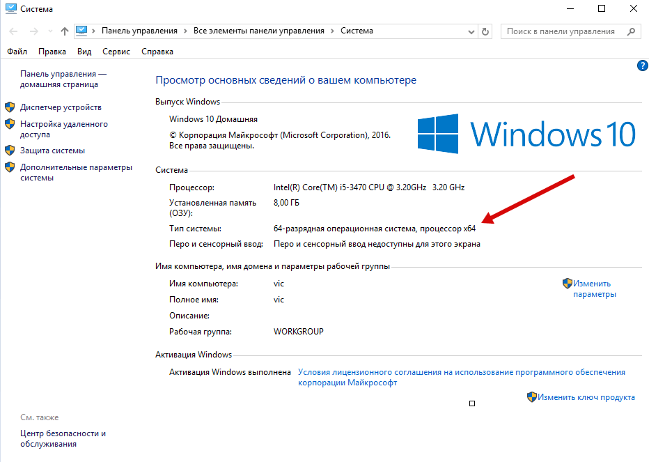 Для проверки разрядности Windows кликаем правой кнопкой по значку «Компьютер» и переходим в раздел «Свойства». Разрядность будет указана в строке «Тип системы».