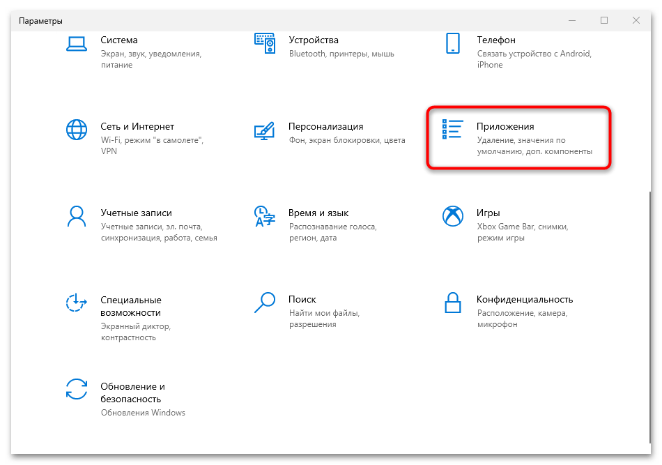Через приложение «Параметры», встроенное в Windows 10, можно перейти в системное окно для восстановления и сброса настроек: