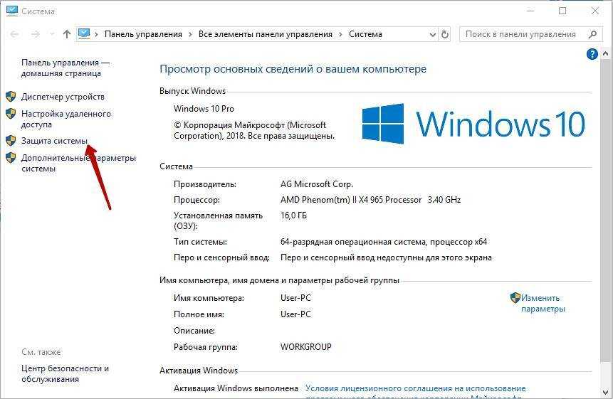 - Откройте вкладку «Защита системы».