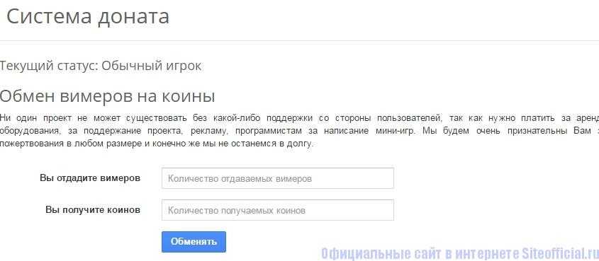 Только зарегистрированный пользователь получает «Обычный» статус. Чтобы его изменить, нужно регулярно обменивать вимеры на коины. Достигнув определенной суммы (все пожертвования ссумируются), будет постепенно изменяться и статус игрока. Администрация назвала это «Полоса доброты».