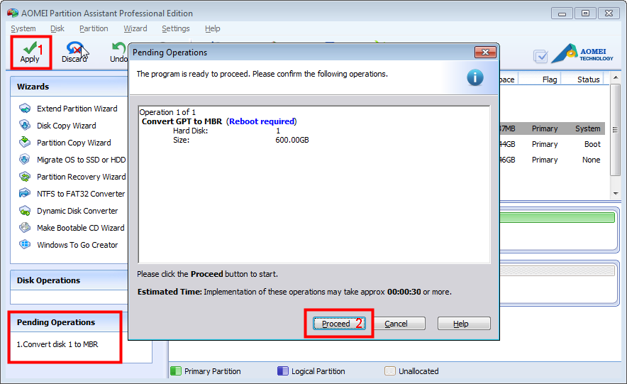 AOMEI Partition Assistant Standard — бесплатно распространяемая утилита для работы с жёсткими дисками и твердотельными накопителями в операционной системе Windows. Программа имеет обширный функционал и может преобразовывать форматы дисков GPT в MBR и обратно.
