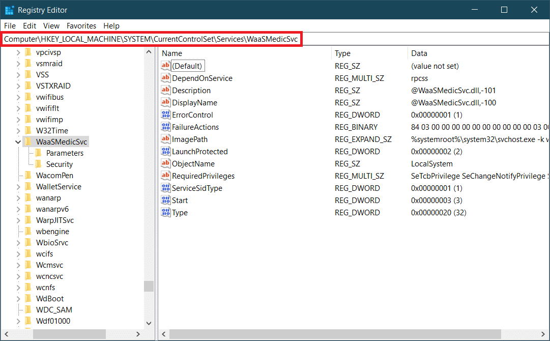 Computer\HKEY_LOCAL_MACHINE\SYSTEM\CurrentControlSet\Services\WaaSMedicSvc