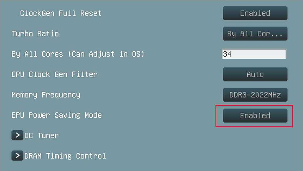 Найдите функцию энергосбережения. Например, если используете материнскую плату ASUS, найдите параметр «EPU Power Saving Mode» в Расширенных настройках и установите значение «Enabled».